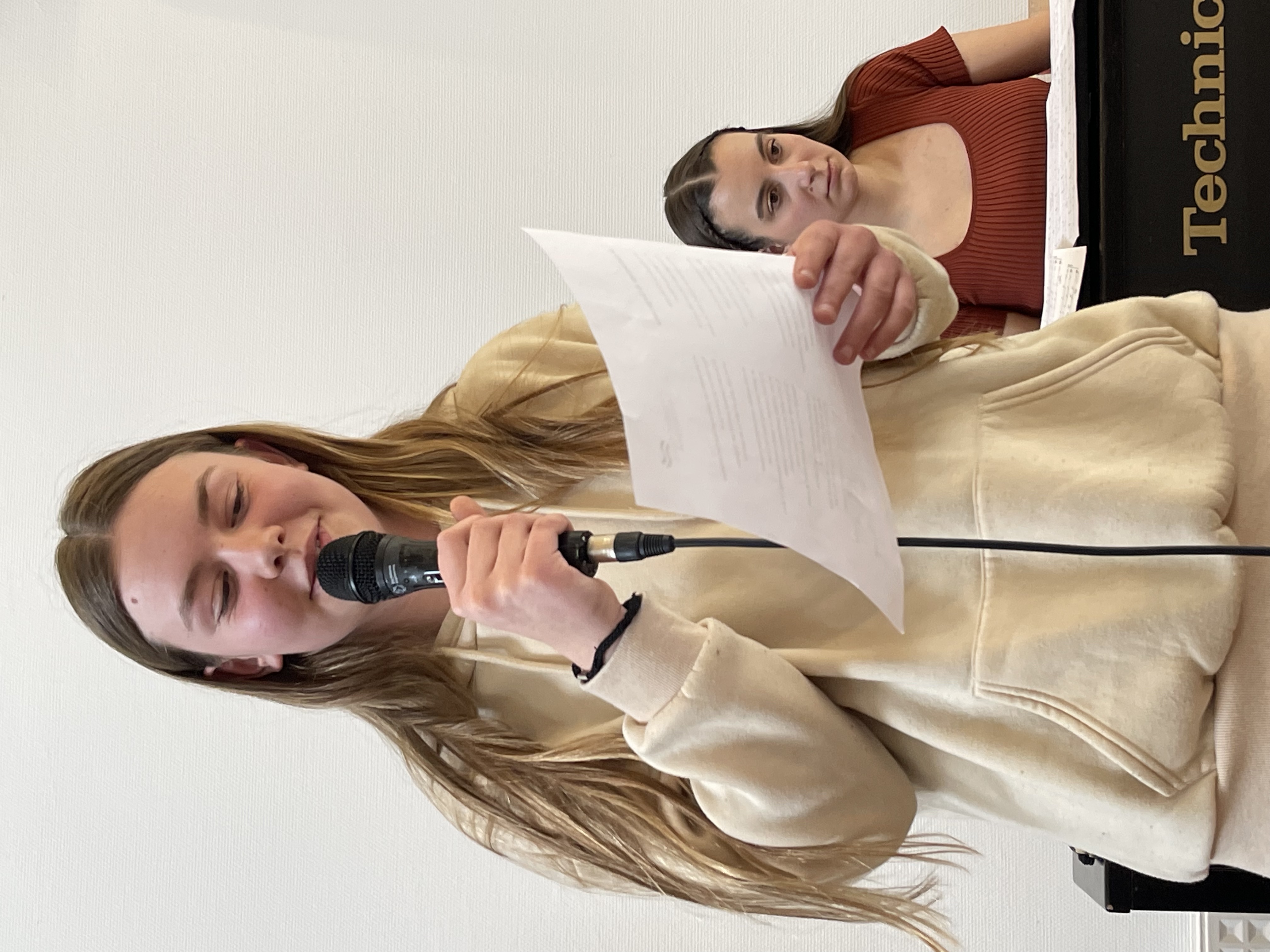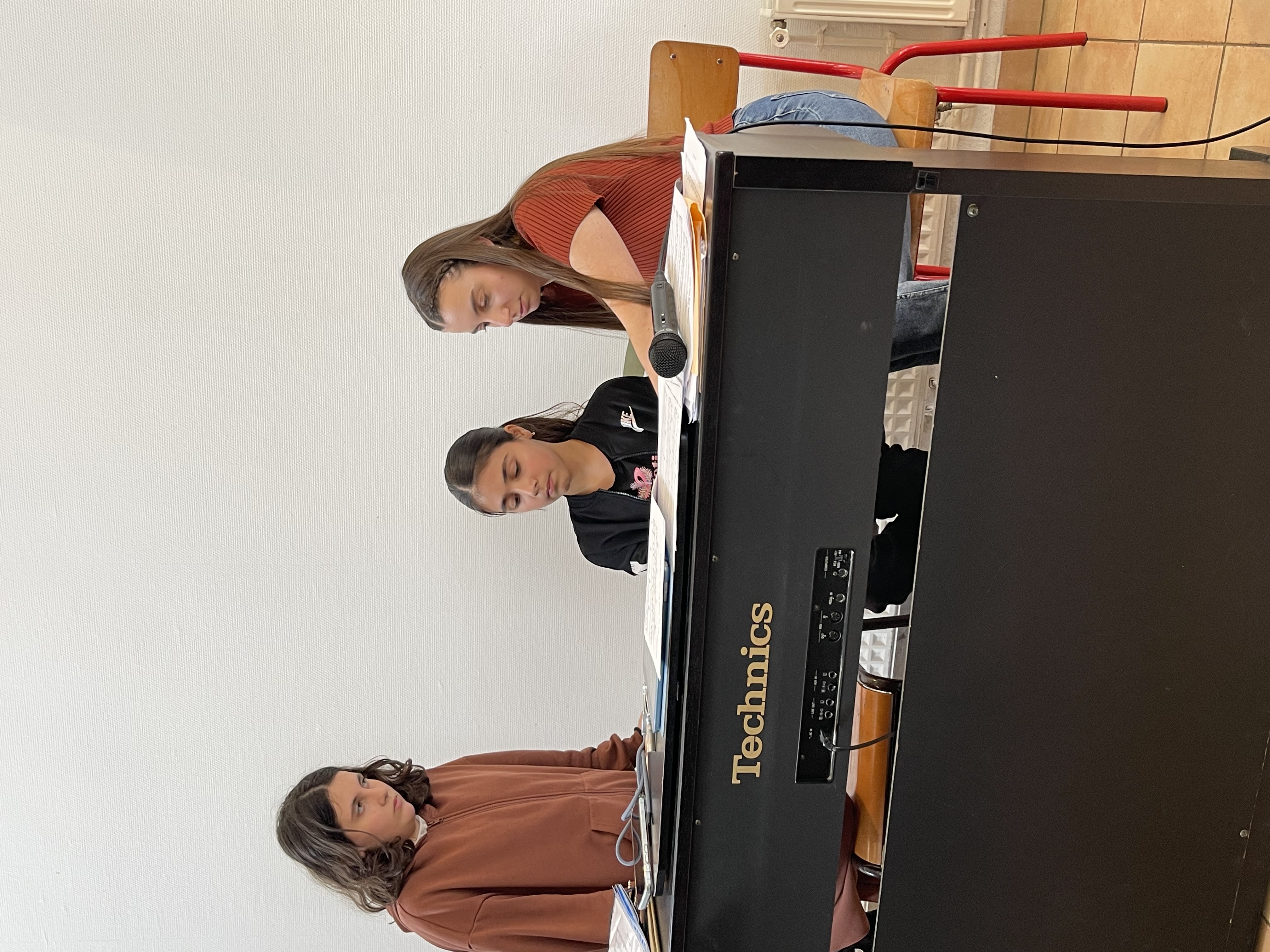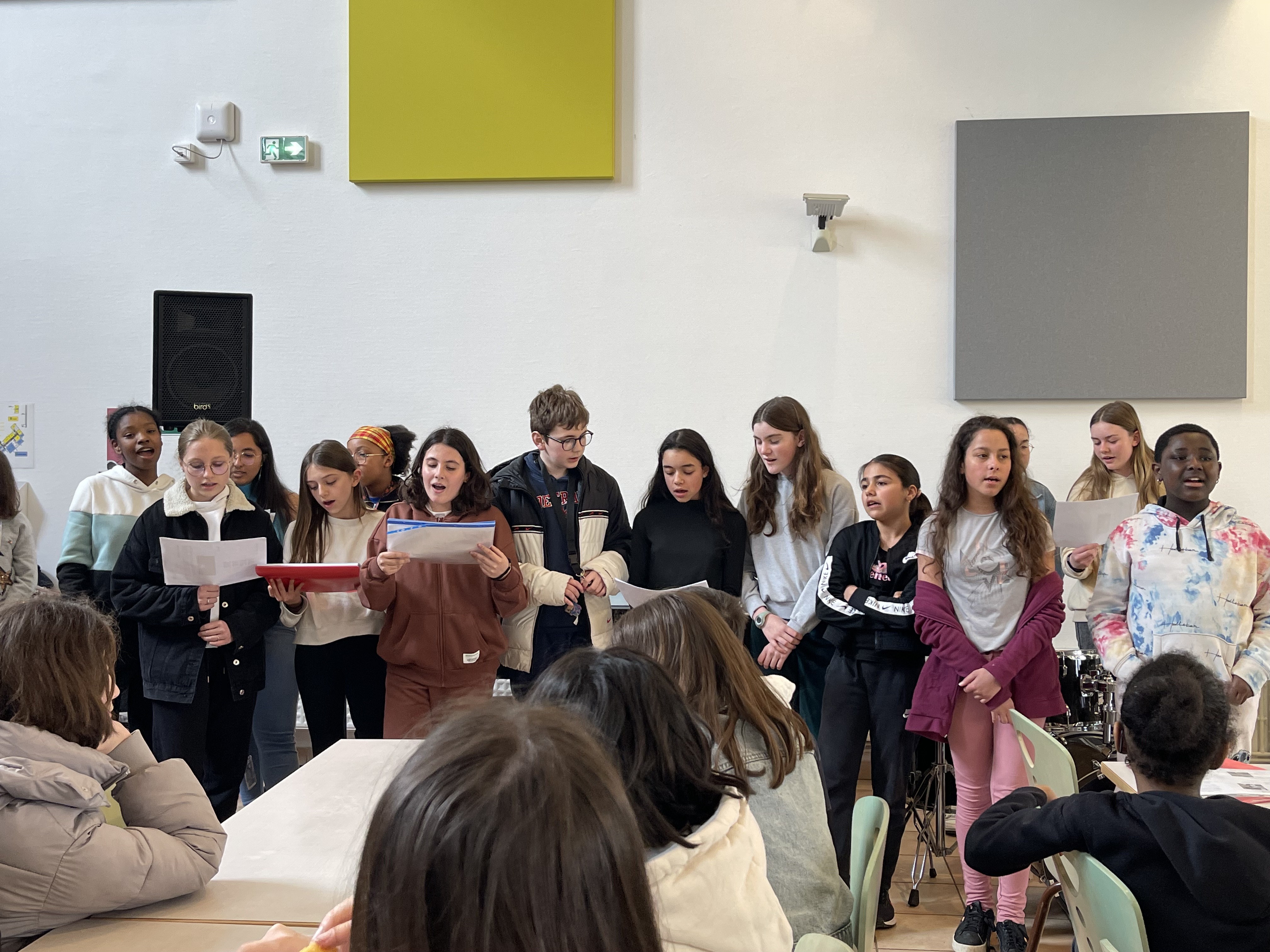 Marine, Mijoro, Elie, Mathéo, Althéa, Anaïs, Emma, Dalia, Lola, ainsi que tous les élèves de la chorale du collège, nous ont offert, le temps de la pause déjeuner, un moment musical.