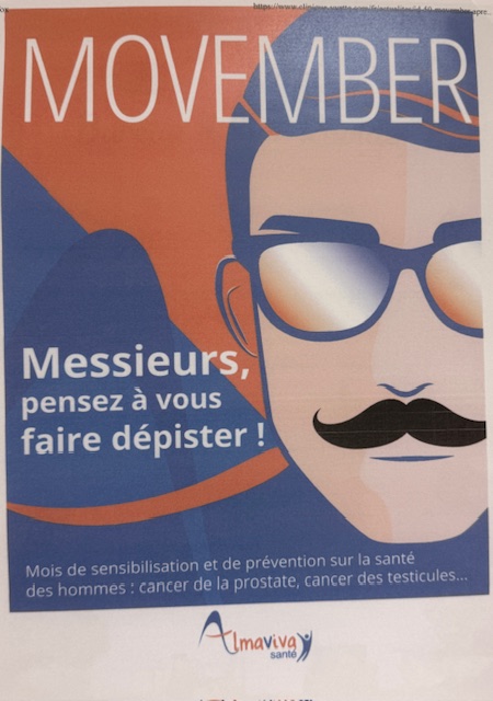 Après Octobre Rose, place à MOVEMBER, le mois de sensibilisation et de prévention pour la santé des hommes : cancer de la prostate, cancer du testicule.
