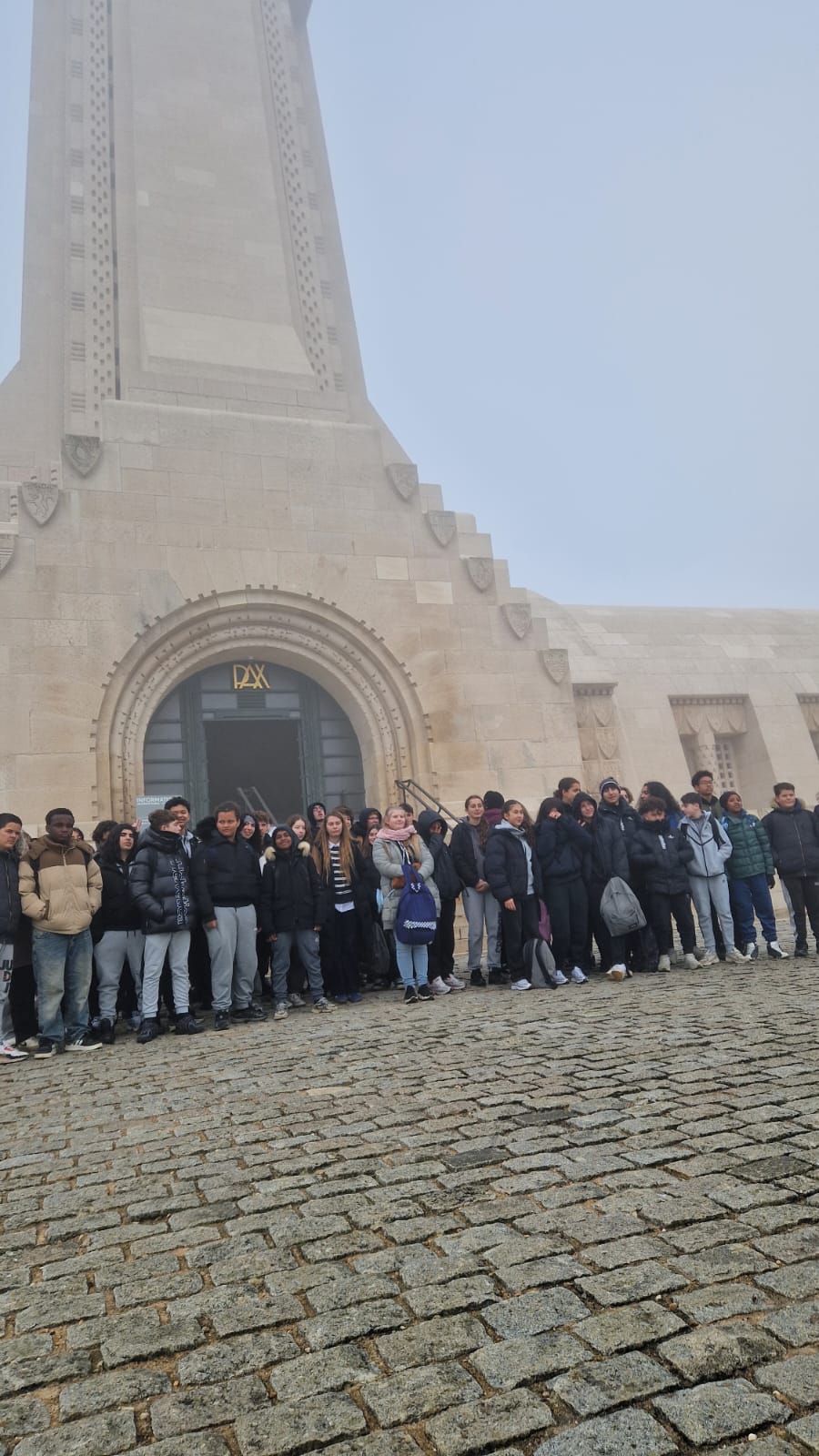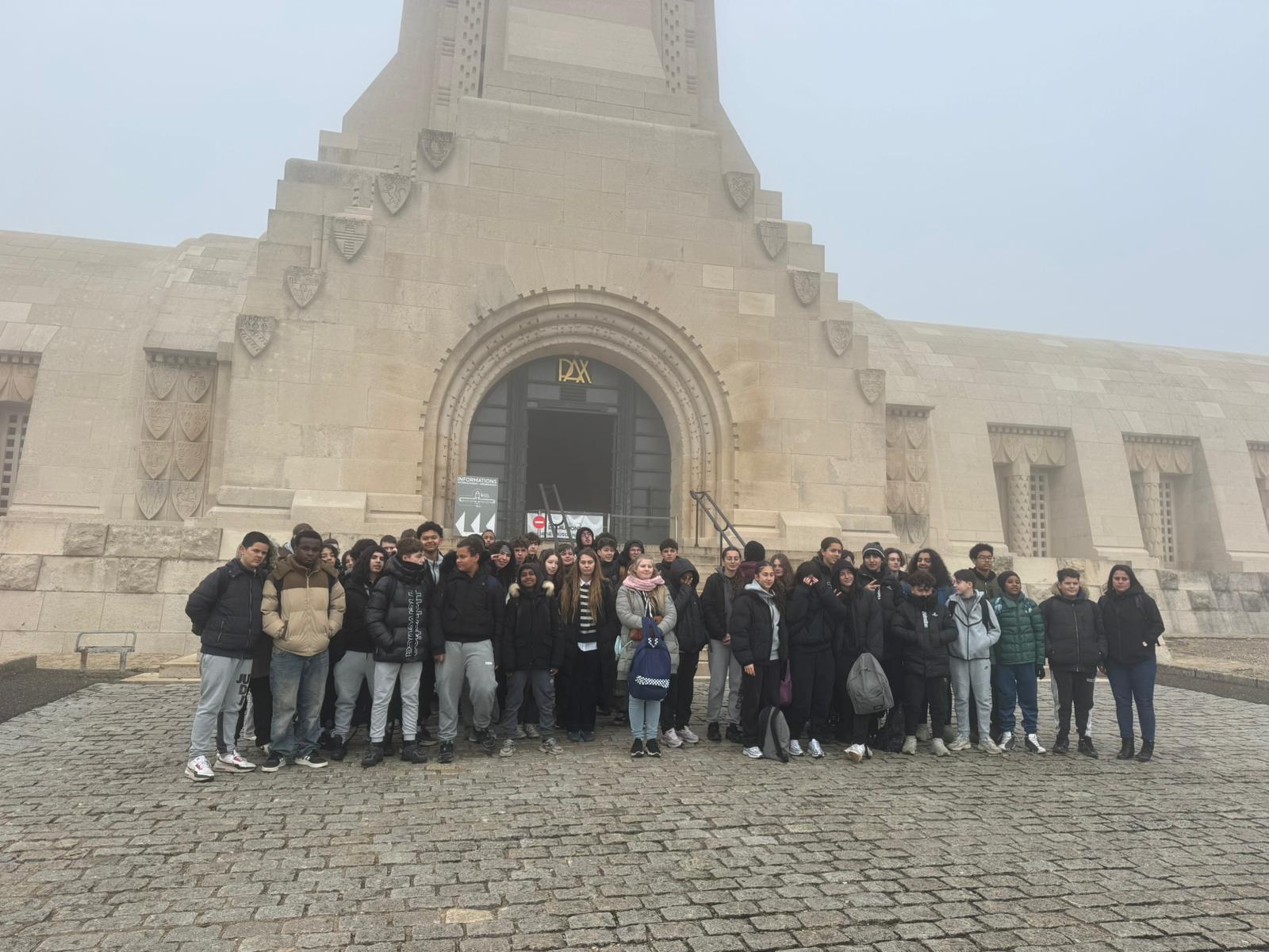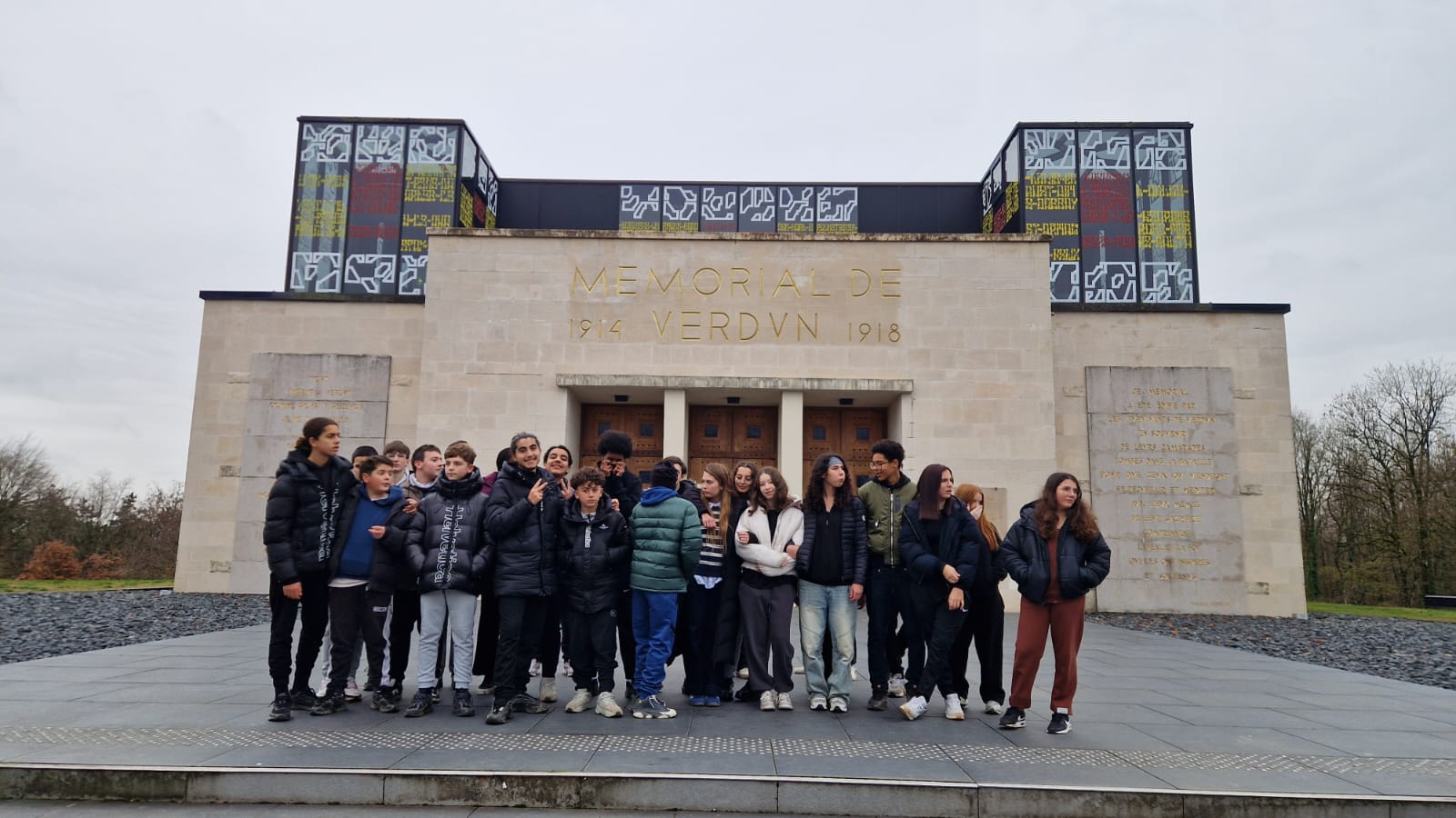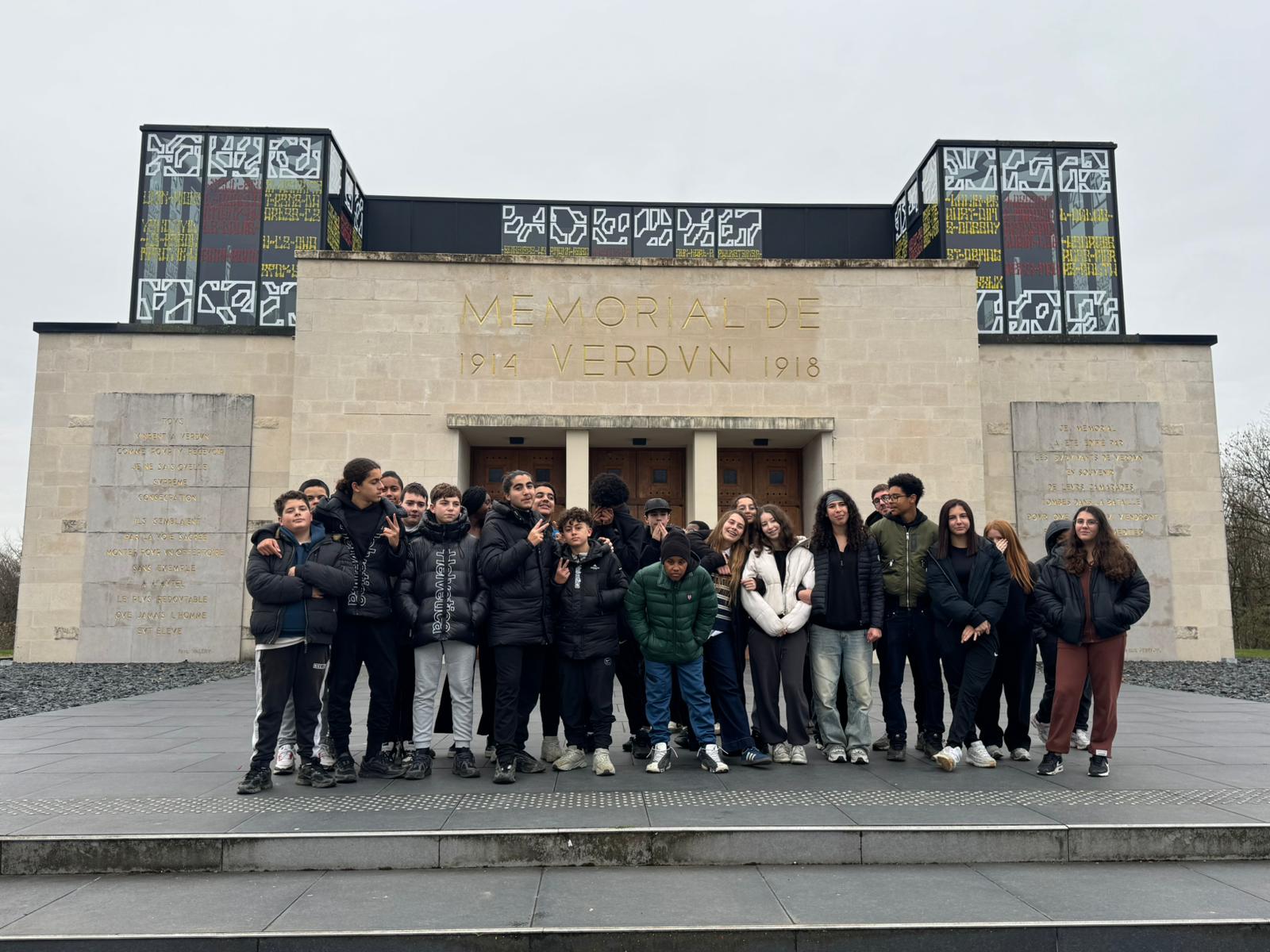 Le jeudi 27 novembre 2025, l’ensemble des élèves de 3e du collège ont participé à une sortie pédagogique à Verdun, accompagnés par plusieurs enseignants. Cette visite s’inscrivait dans un travail mené conjointement en histoire et en français autour de la Première Guerre mondiale et des lettres de Poilus.