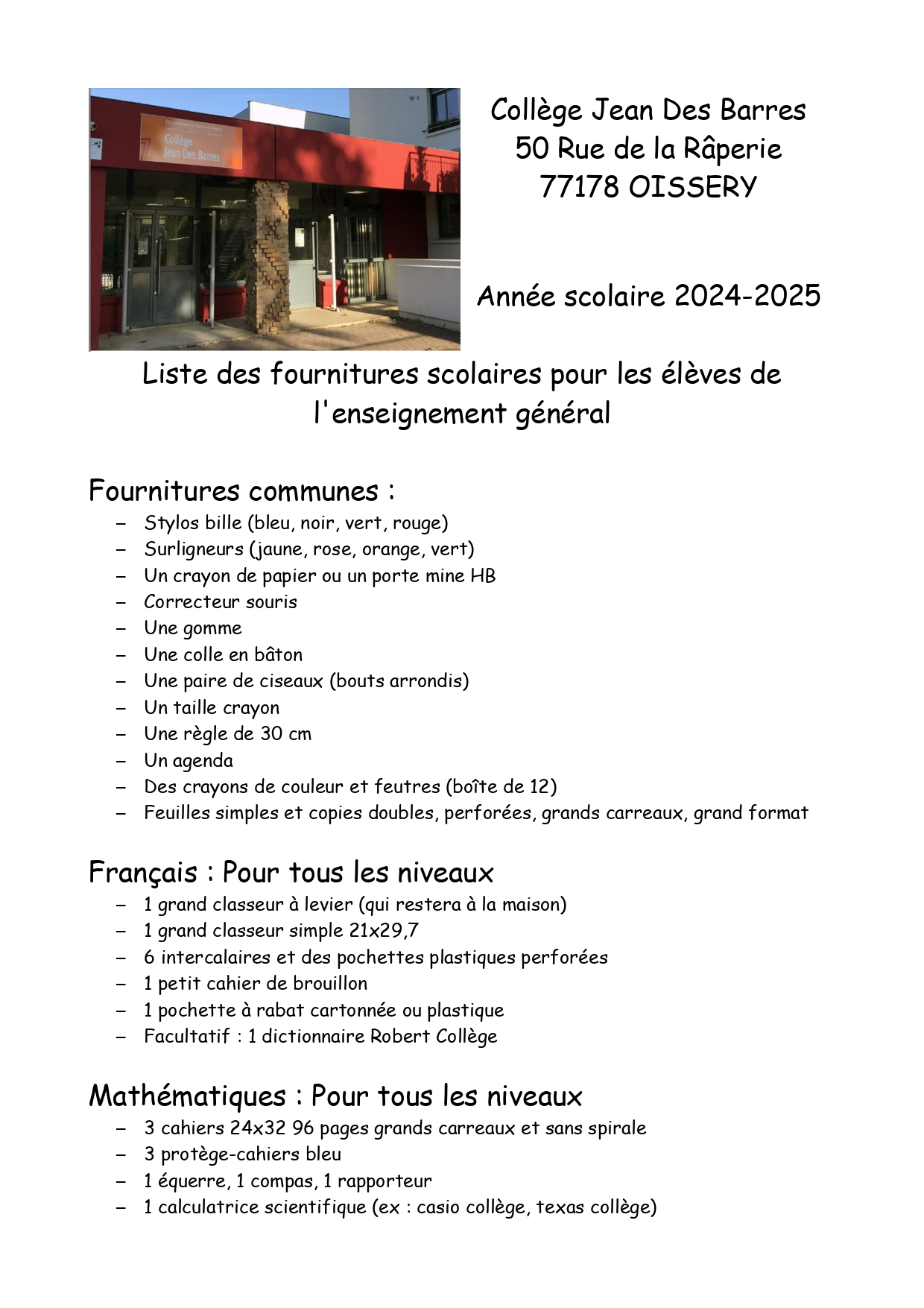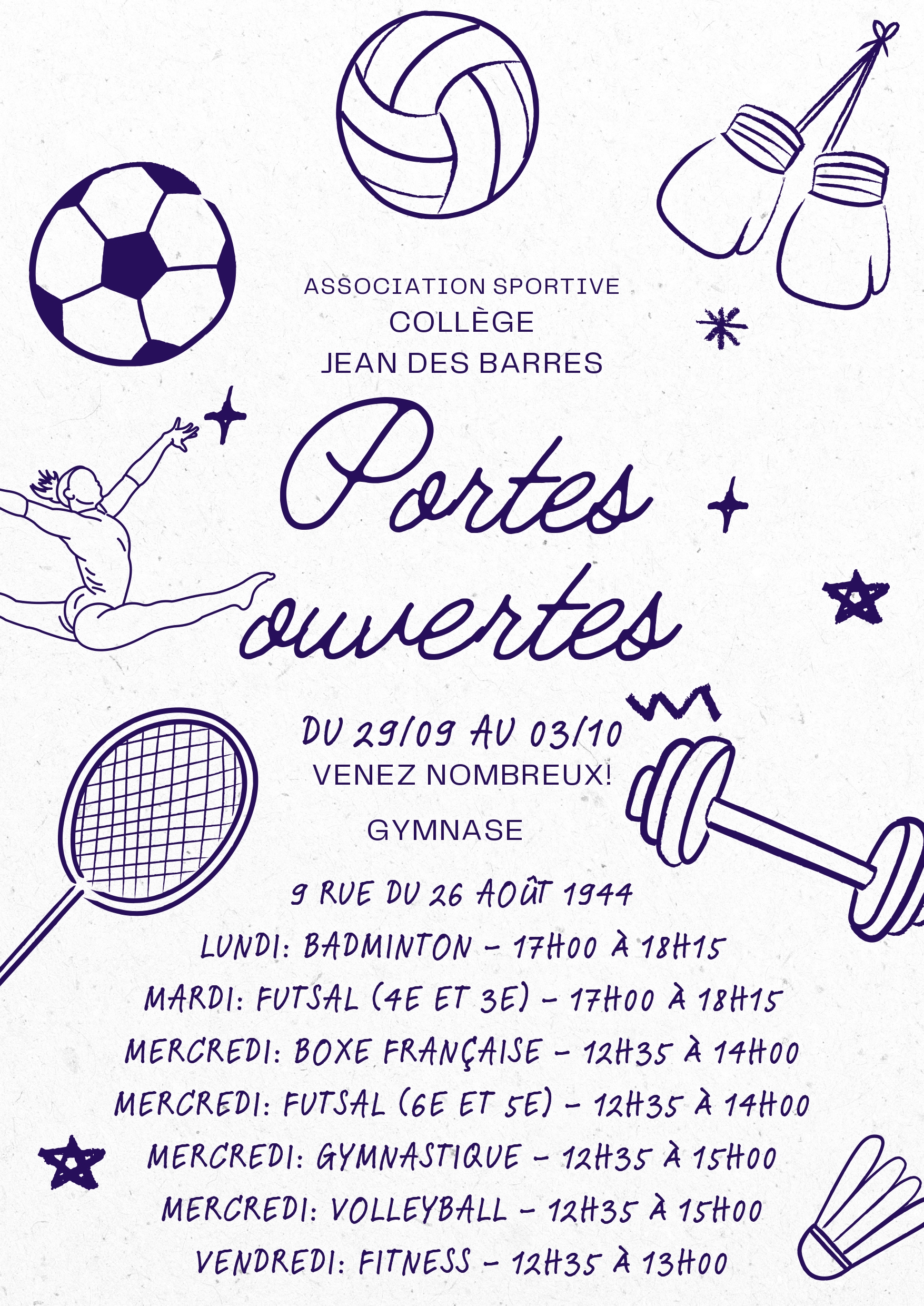 Portes ouvertes - Association Sportive du Collège JDB Mesdames, Messieurs, chers élèves, L'AS du collège débute lundi [...]