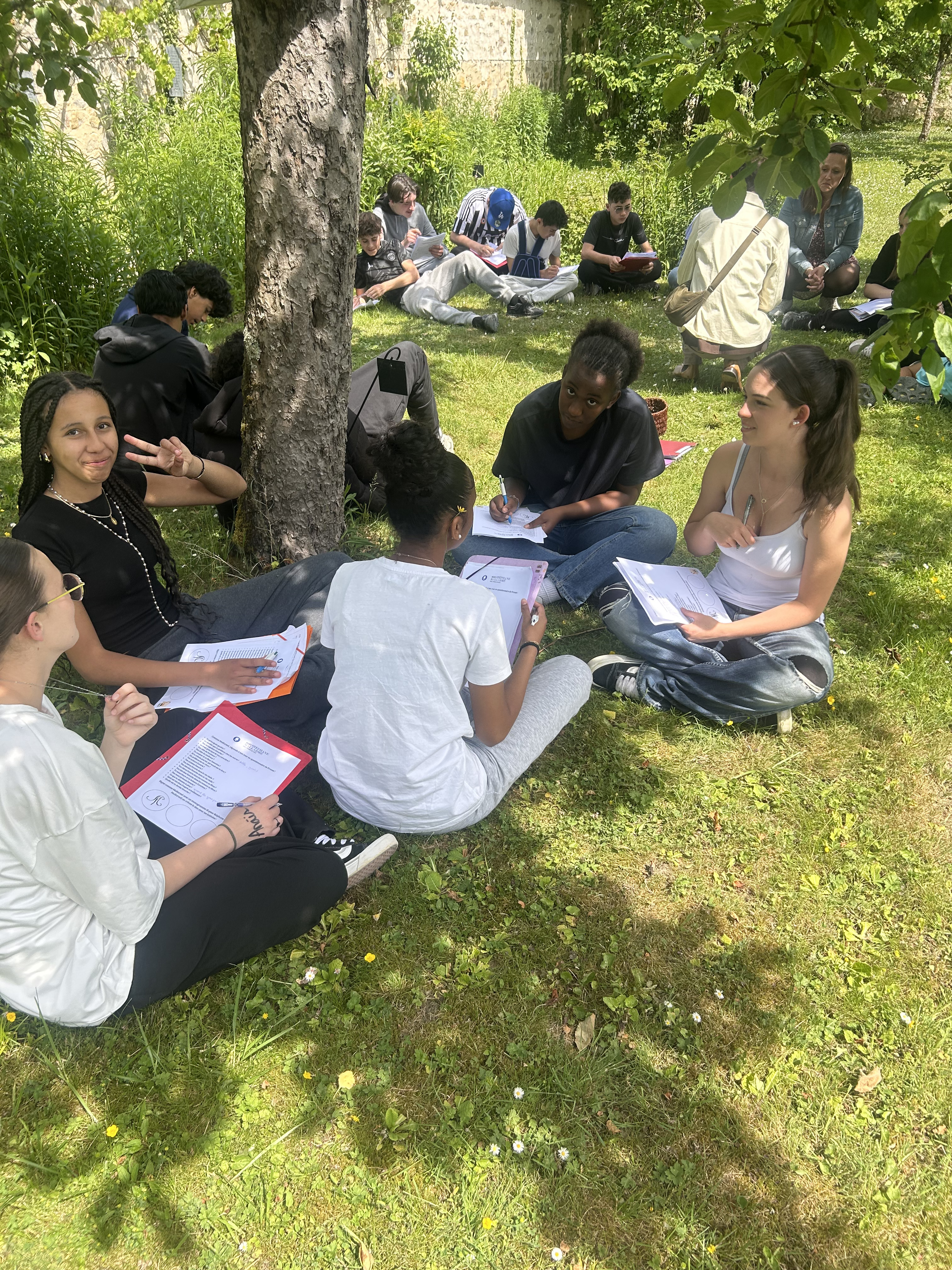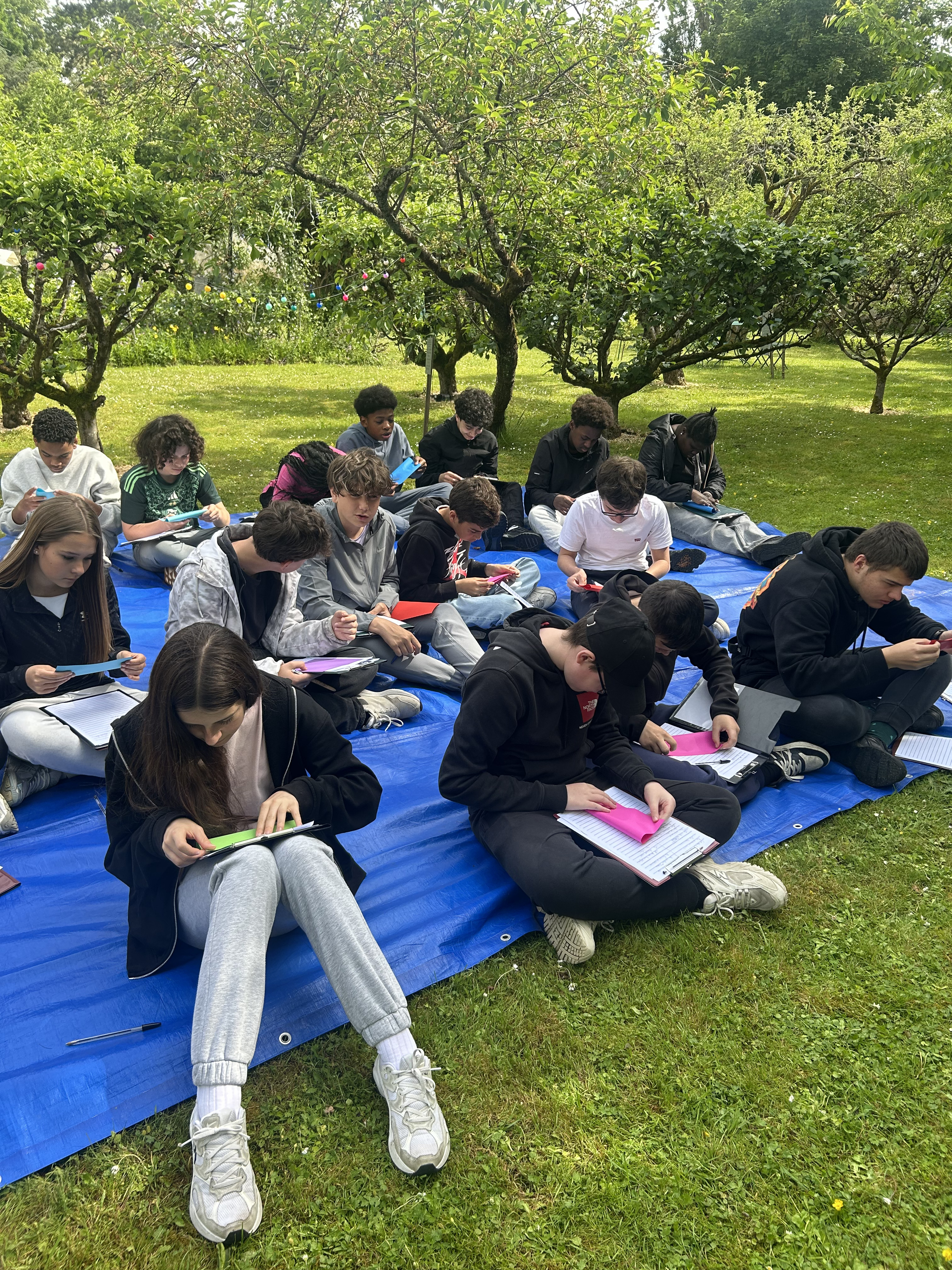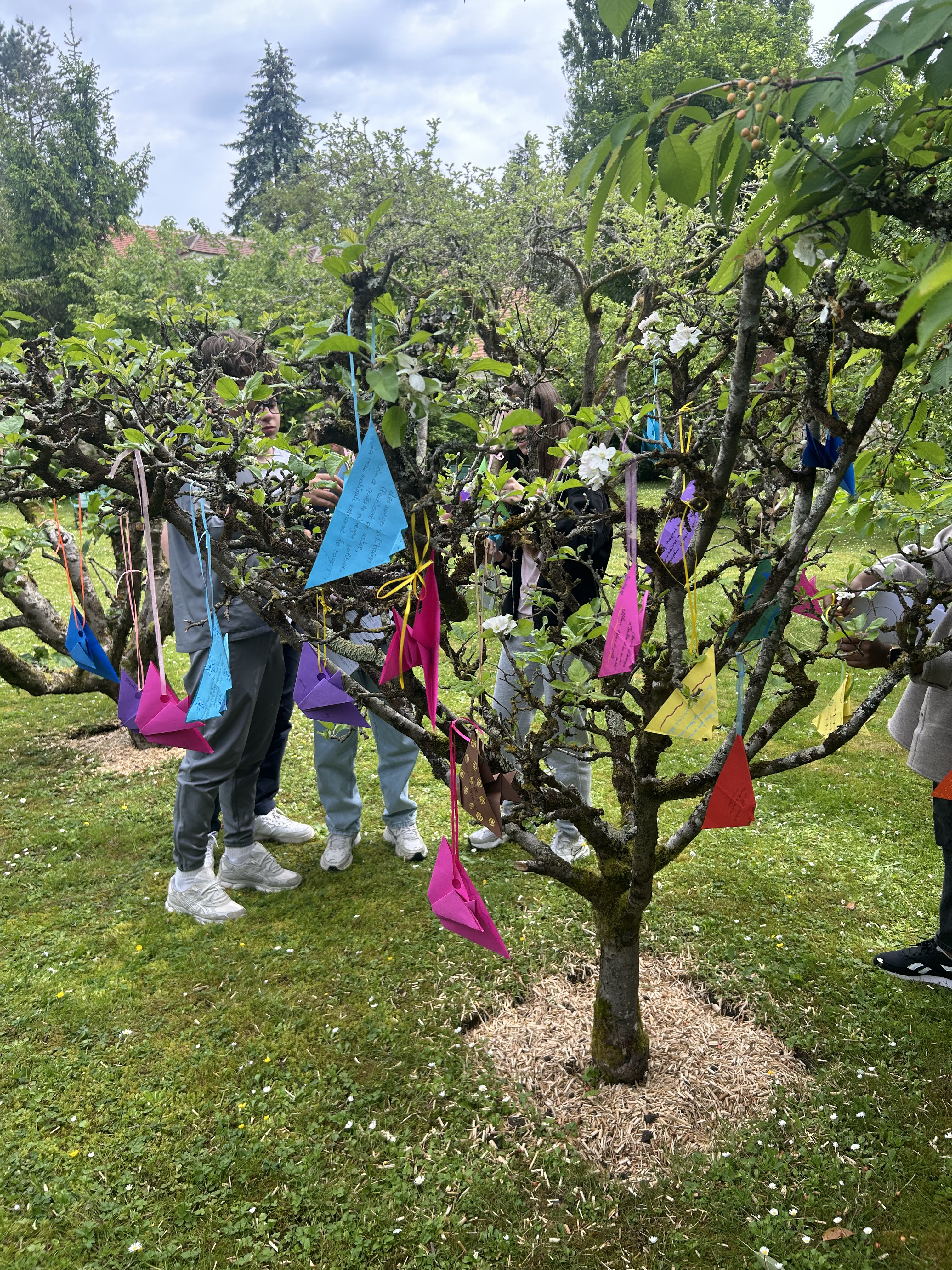 Cette séquence a également été enrichie par une sortie scolaire au musée Départemental Stéphane Mallarmé, situé en bord de Seine. Les élèves ont bénéficié d’une visite guidée du musée, découvrant la vie et l’œuvre du poète symboliste dans le cadre intimiste de sa maison. À la suite de cette immersion, ils ont participé à un atelier d’écriture où ils ont rédigé des haïkus inspirés de leur visite. Ces poèmes courts, chargés d’émotion et de sensibilité, ont ensuite été inscrits sur des origamis qu’ils avaient eux-mêmes réalisés, mêlant ainsi art du pliage et poésie.Le déjeuner convivial sur les bords de Seine, a favorisé les échanges et le partage d’impressions dans un cadre bucolique propice à l’inspiration.