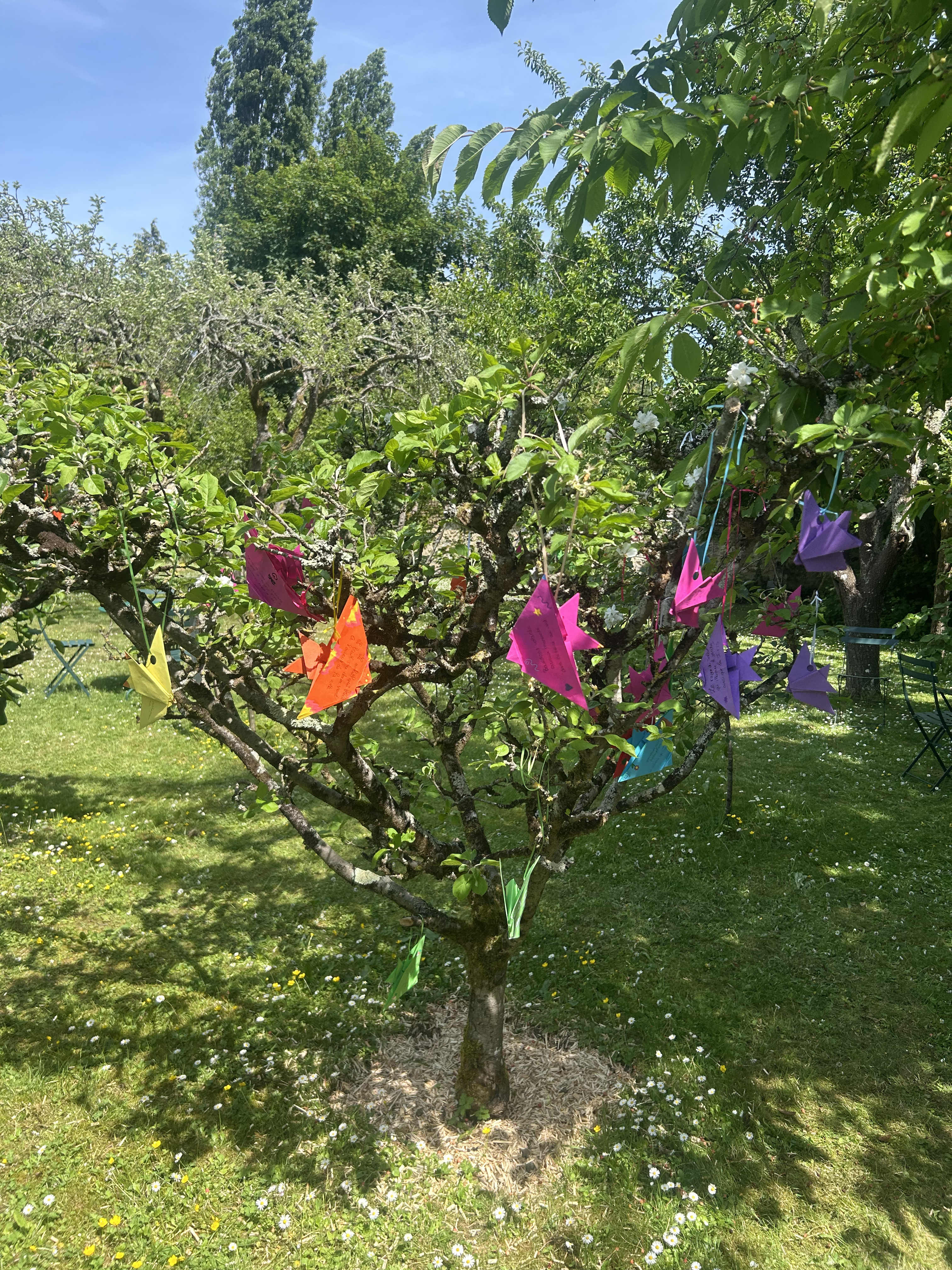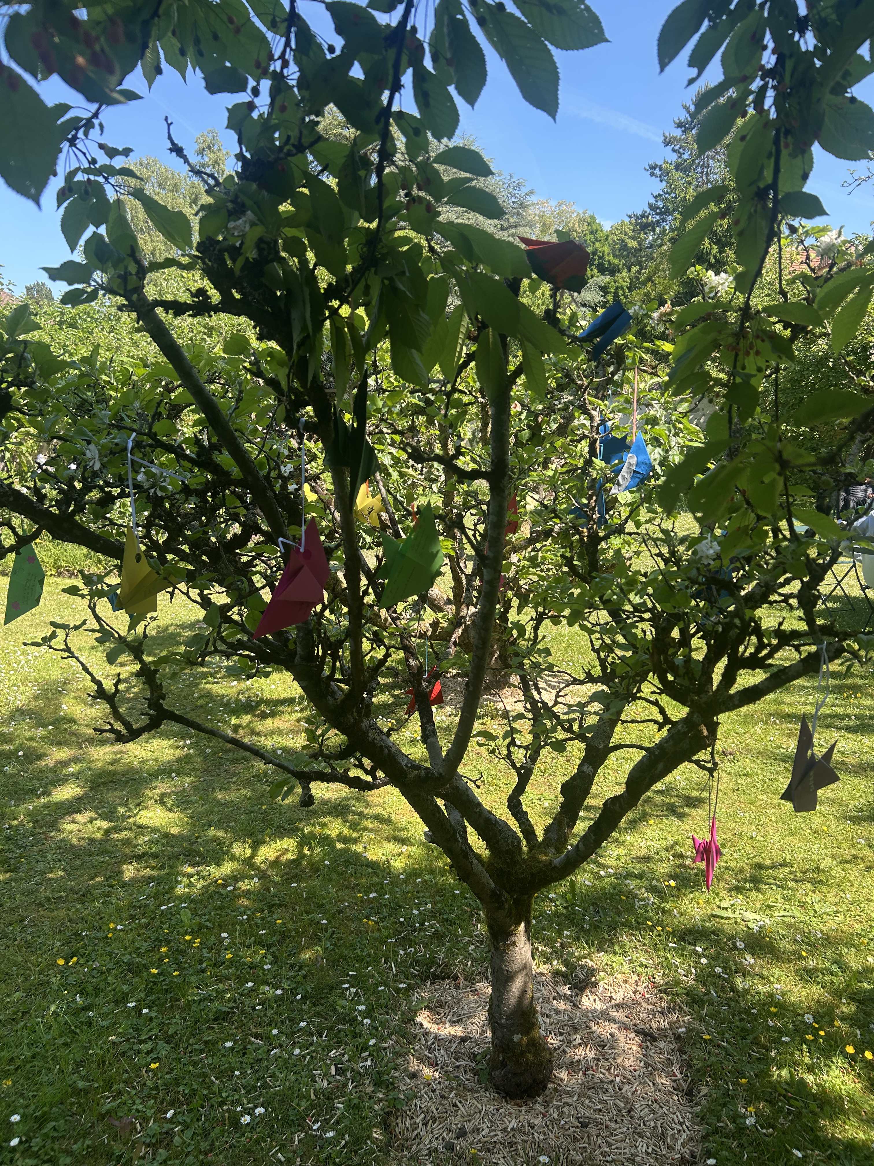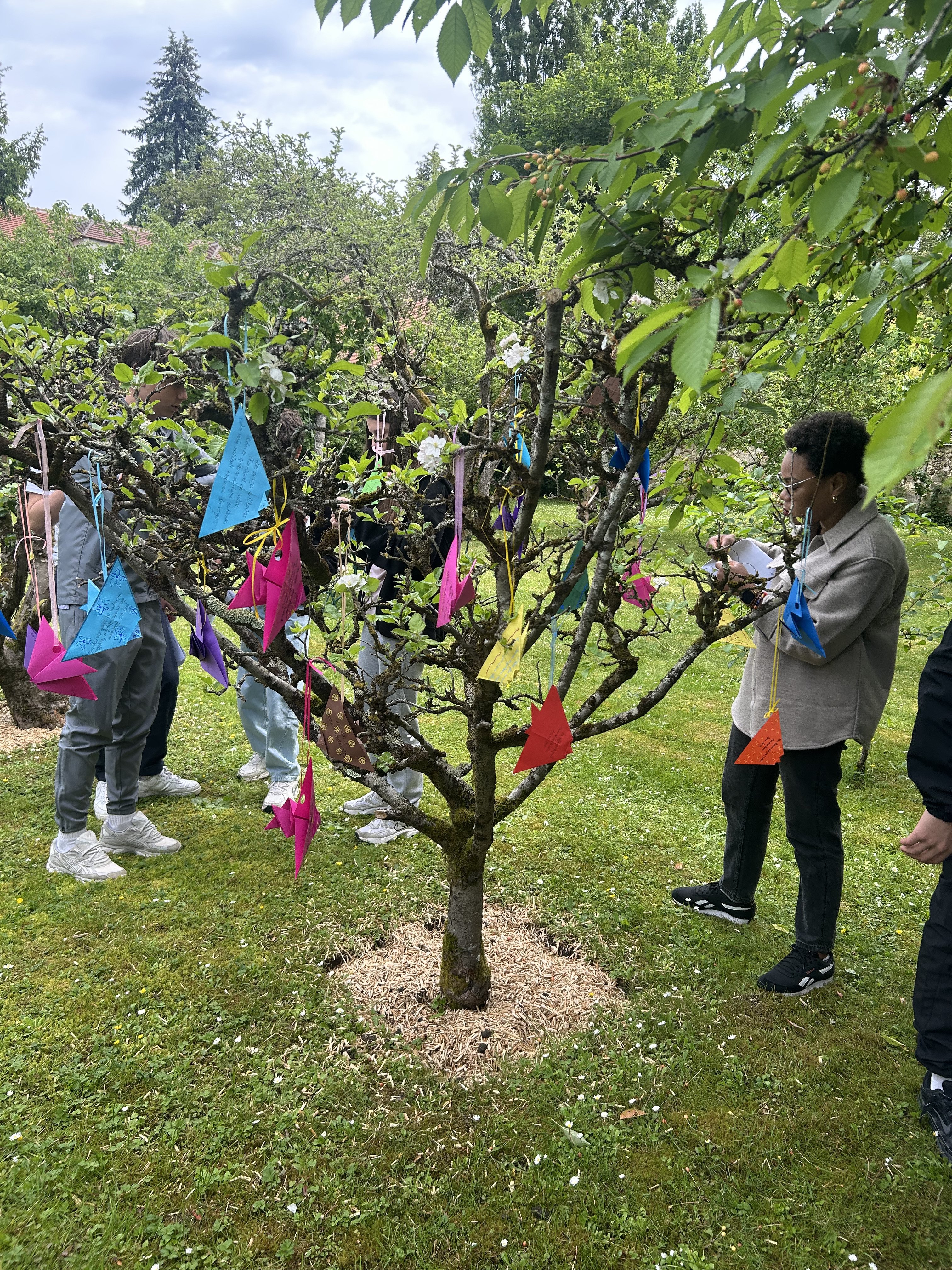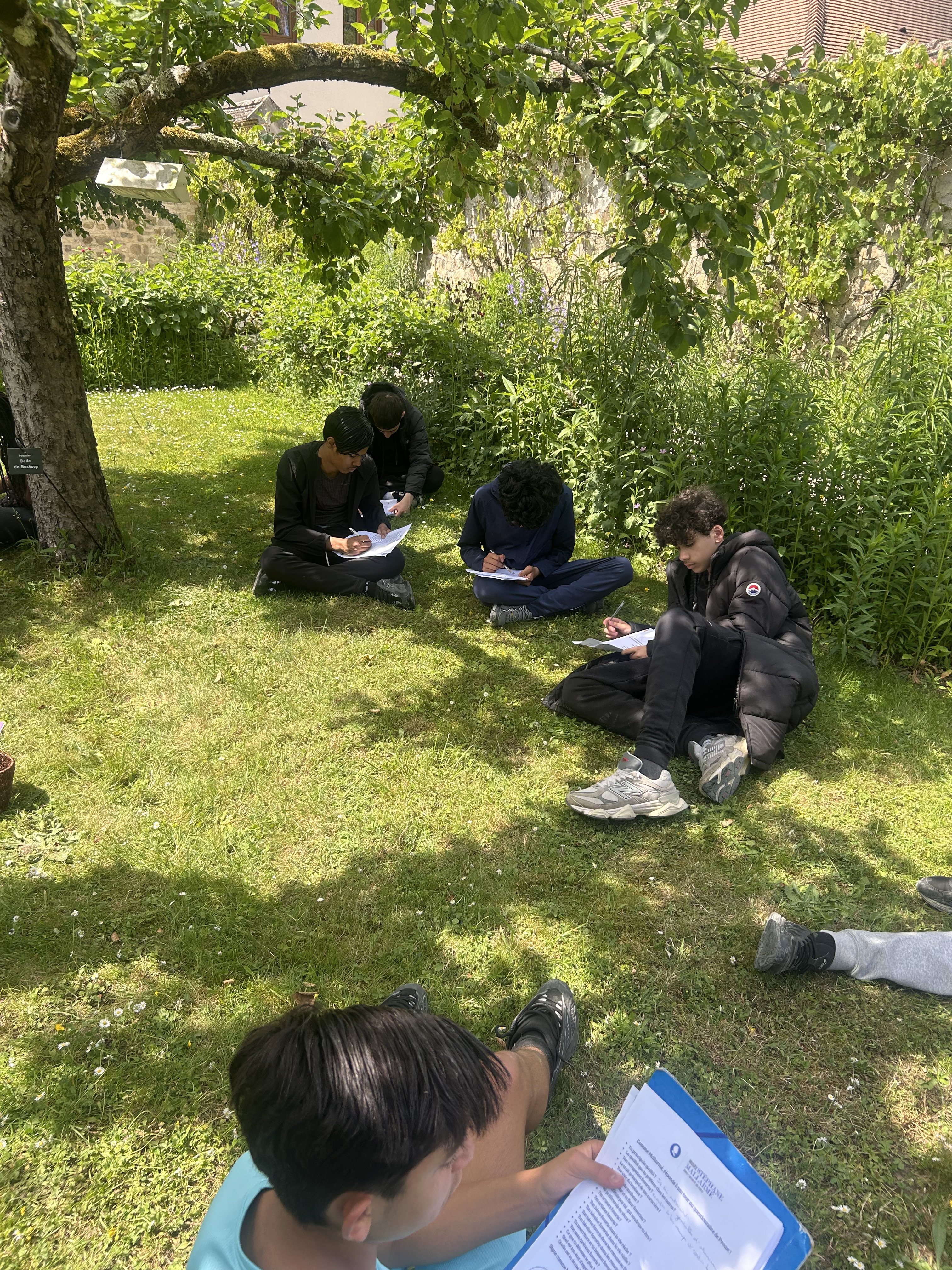 Cette séquence a également été enrichie par une sortie scolaire au musée Départemental Stéphane Mallarmé, situé en bord de Seine. Les élèves ont bénéficié d’une visite guidée du musée, découvrant la vie et l’œuvre du poète symboliste dans le cadre intimiste de sa maison. À la suite de cette immersion, ils ont participé à un atelier d’écriture où ils ont rédigé des haïkus inspirés de leur visite. Ces poèmes courts, chargés d’émotion et de sensibilité, ont ensuite été inscrits sur des origamis qu’ils avaient eux-mêmes réalisés, mêlant ainsi art du pliage et poésie.Le déjeuner convivial sur les bords de Seine, a favorisé les échanges et le partage d’impressions dans un cadre bucolique propice à l’inspiration.