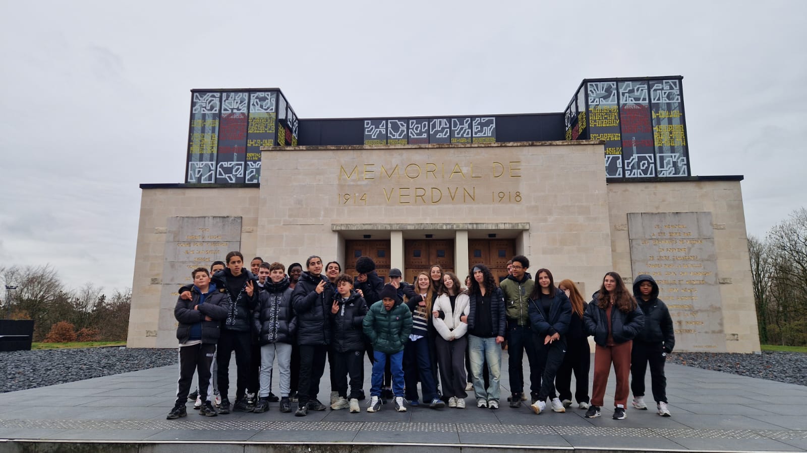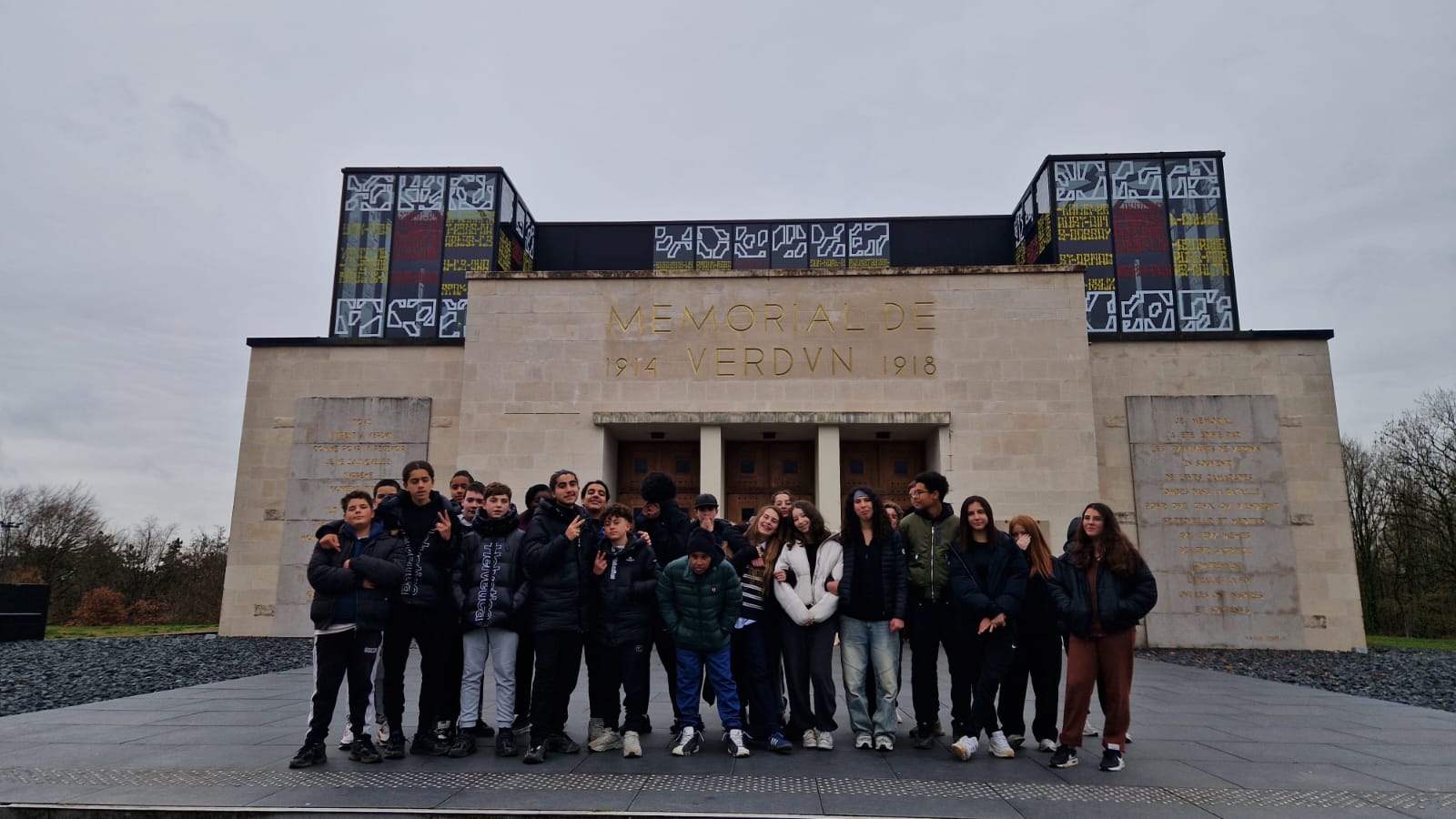 Le jeudi 27 novembre 2025, l’ensemble des élèves de 3e du collège ont participé à une sortie pédagogique à Verdun, accompagnés par plusieurs enseignants. Cette visite s’inscrivait dans un travail mené conjointement en histoire et en français autour de la Première Guerre mondiale et des lettres de Poilus.
