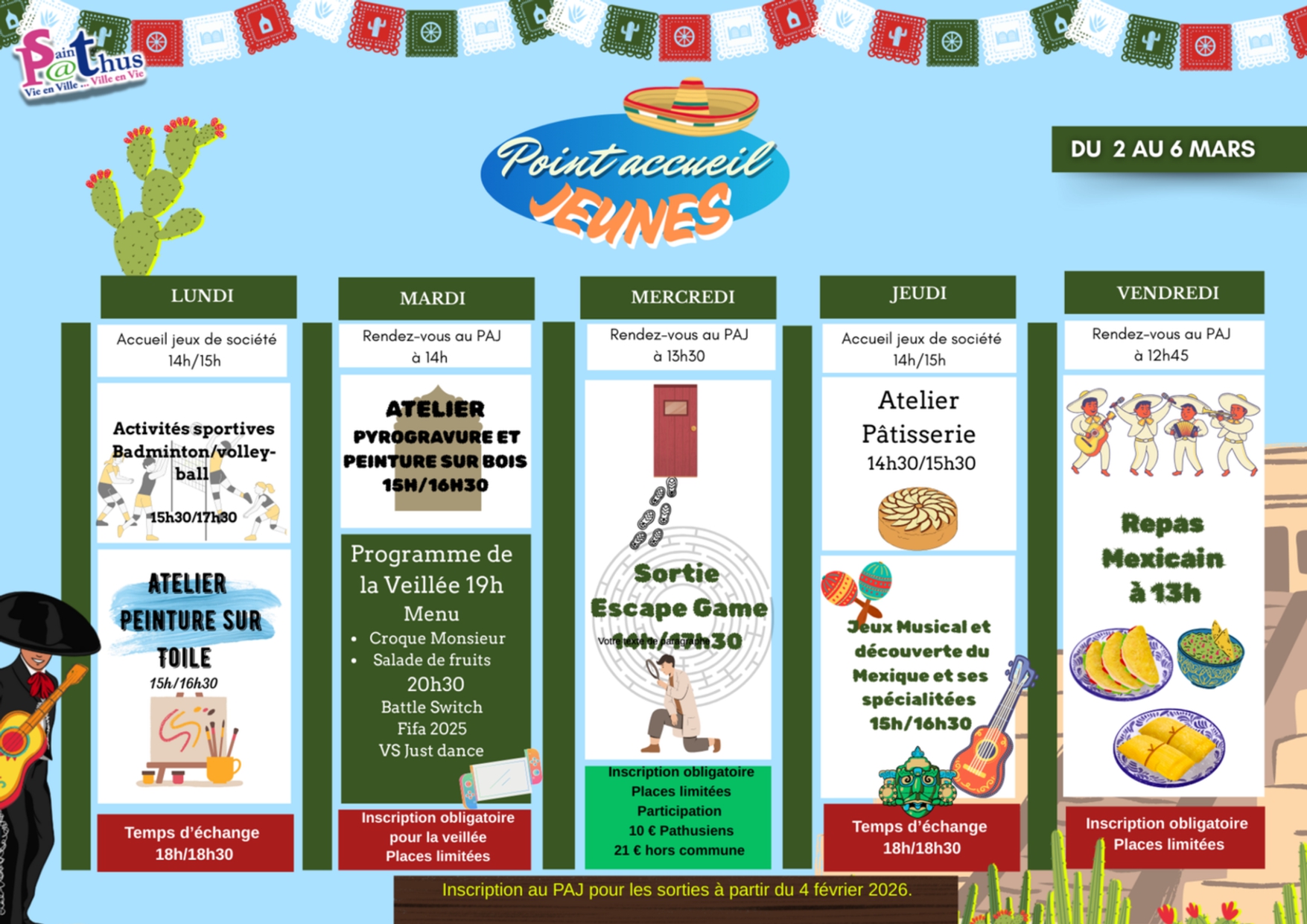 Ci-joint le programme des activités durant les vacances de février...